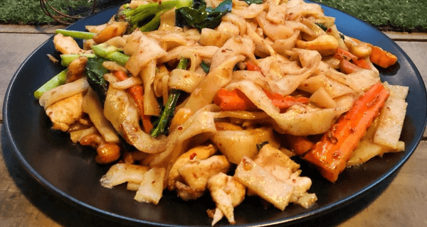 - Add onion and stir fry for 4 minutes or until golden. Add carrot, broccoli and noodles. Return the chicken and any juices to the wok. Add chilli jam, fish sauce, soy sauce and stir fry for 2-3 minutes or until the chicken is coated in sauce and cooked through.